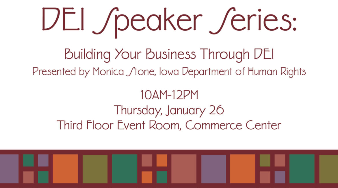 January’s DEI Speaker Series will be hosted by Monica Stone, Deputy Director for the Iowa Department of Human Rights. This session will be from 10AM-12PM on Thursday, January 26 in the Third Floor Event Room of the Commerce Center. Monica’s session will cover the different ways that incorporating diversity, equity,...